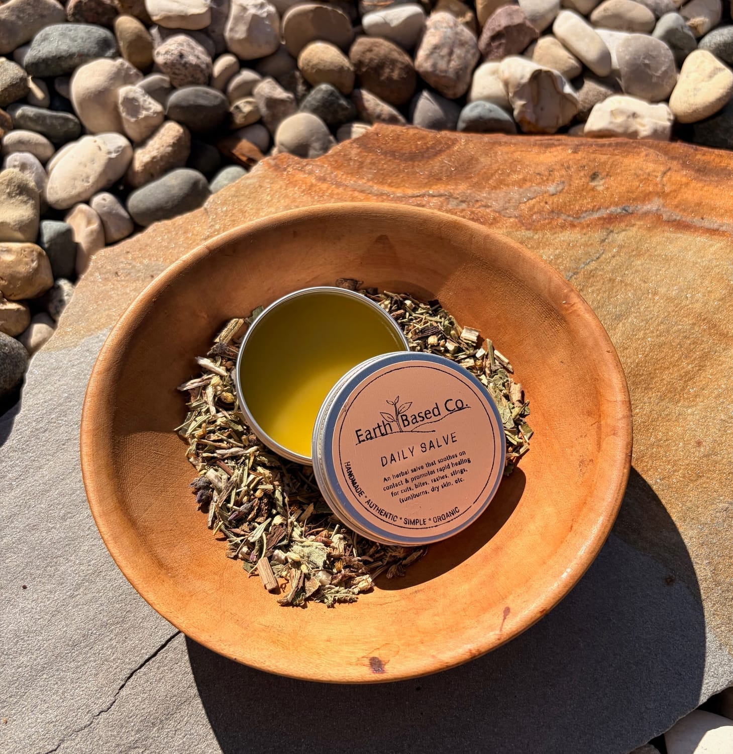 An herbal salve that soothes on contact & promotes rapid healing for cuts, bites, rashes, stings, (sun)burns,